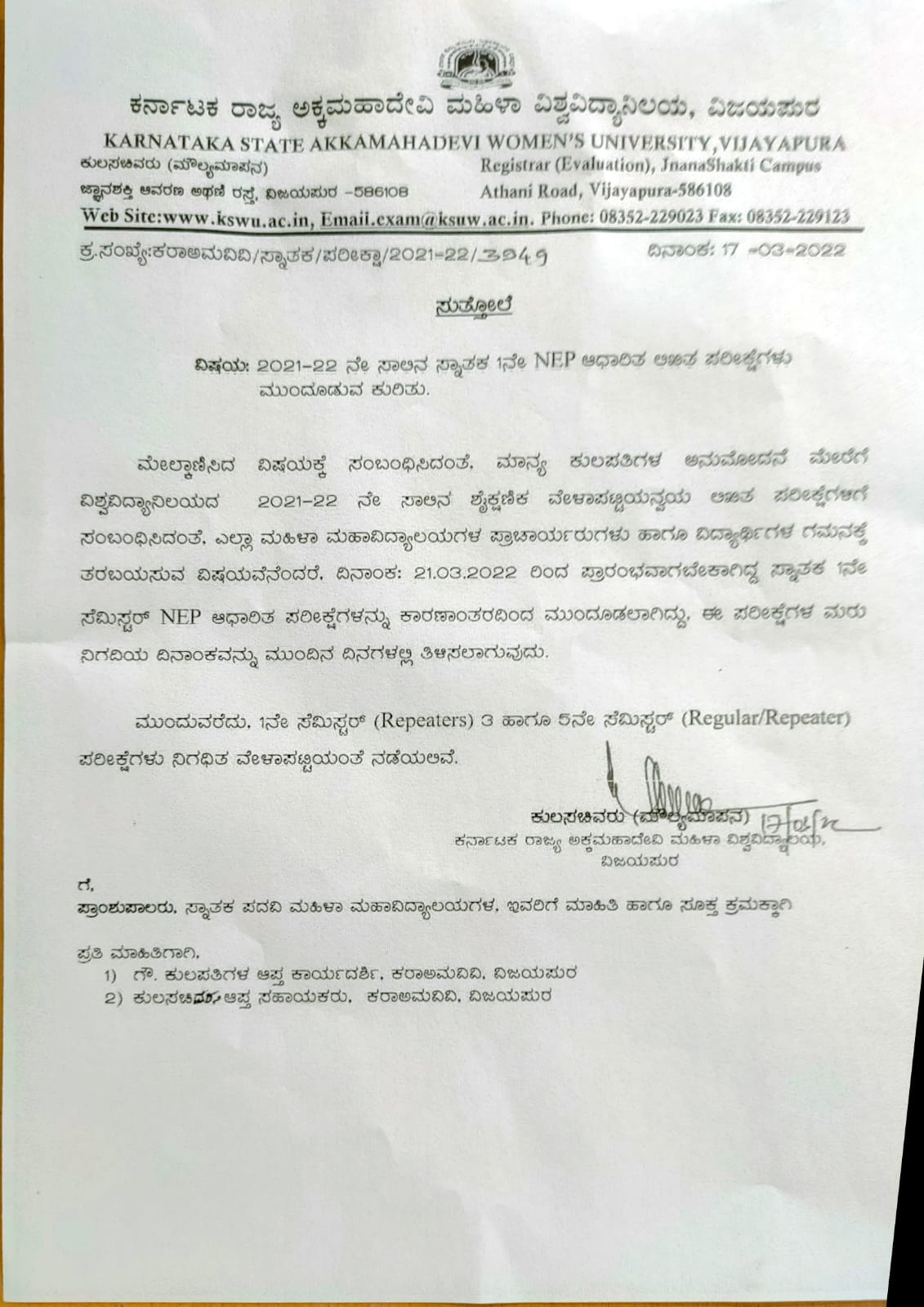 for women, Ranebennur from the academic year 1979-80, exclusively